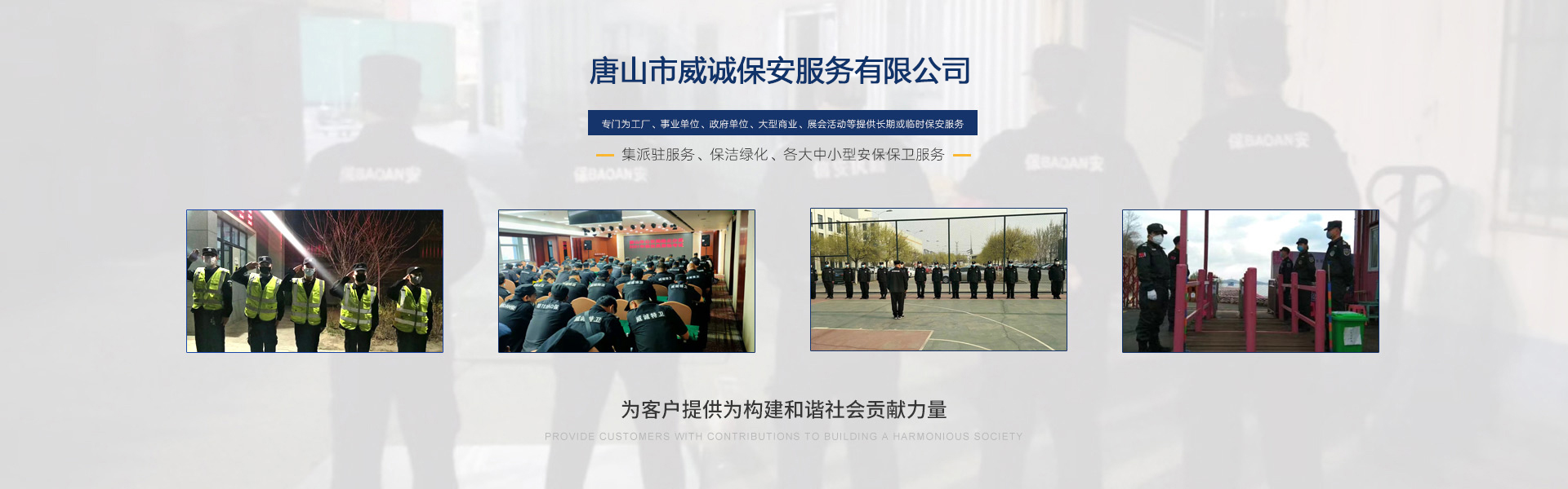 唐山市威誠(chéng)保安服務(wù)有限公司自成立以來(lái)以“嚴(yán)防死守、忠于業(yè)主”為服務(wù)原則,以“客戶滿意、 合作共贏”為根本目標(biāo)。以科學(xué)的管理、多方位多層次的服務(wù),建立了首問(wèn)責(zé)任制,完善了走訪、回訪 、滿意度調(diào)查、末位淘汰的預(yù)警管理,不斷提高服務(wù)質(zhì)量,提高業(yè)主滿意度,提高企業(yè)形象。秉承“誠(chéng) 實(shí)守信,紀(jì)律嚴(yán)明,團(tuán)結(jié)協(xié)作,致精致誠(chéng)”的服務(wù)理念,為客戶提供高品質(zhì)、多方位、專(zhuān)業(yè)化的保安服務(wù)。 本公司制定了嚴(yán)謹(jǐn)?shù)亩ㄏ蛘猩徢芭嘤?xùn)、考核錄用、崗中培訓(xùn)、持續(xù)培訓(xùn)、末位淘汰制等一整套完善的管理體系。可以根據(jù)客戶的要求實(shí)地勘察評(píng)估,以量身定做的方式提供安保防范服務(wù)。